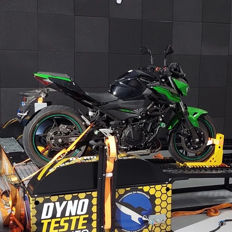 Aferição para motocicletas também está disponível! Com uma inércia de 25% da total 337kgs e fixação pela roda dianteira somos capazes de aferir motos de alta e baixa cilindrada com precisão de 0.1CV.