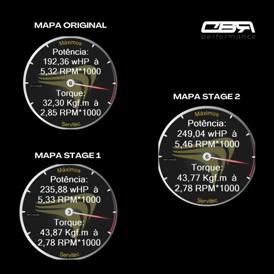 • Ganho de torque e potência de acordo com os upgrades instalados
