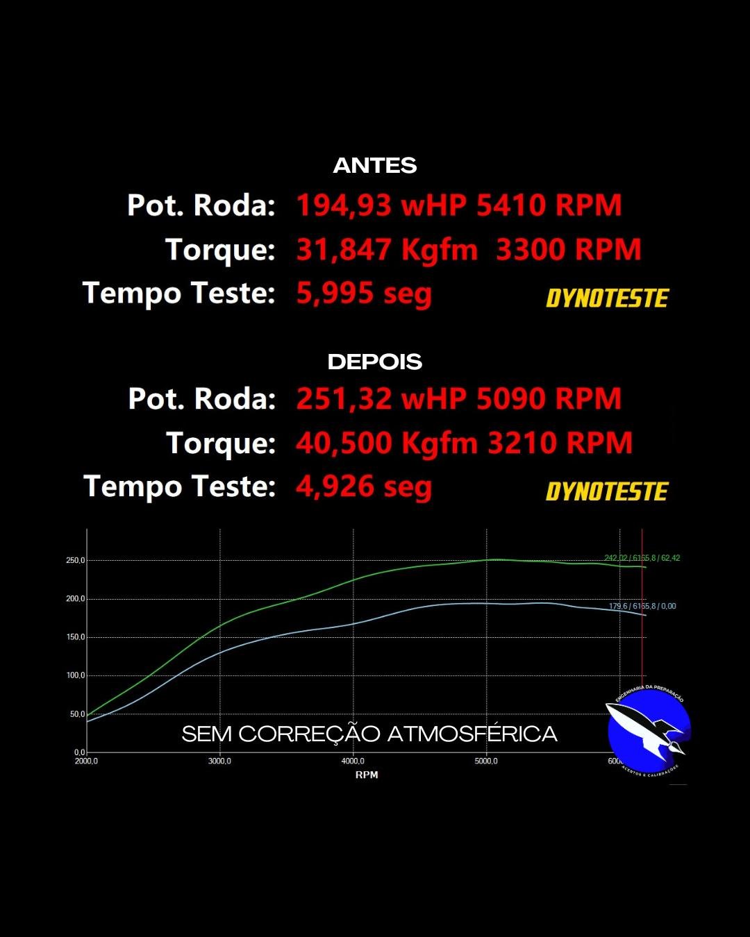 - Ganho de torque e potência de acordo com os upgrades instalados
